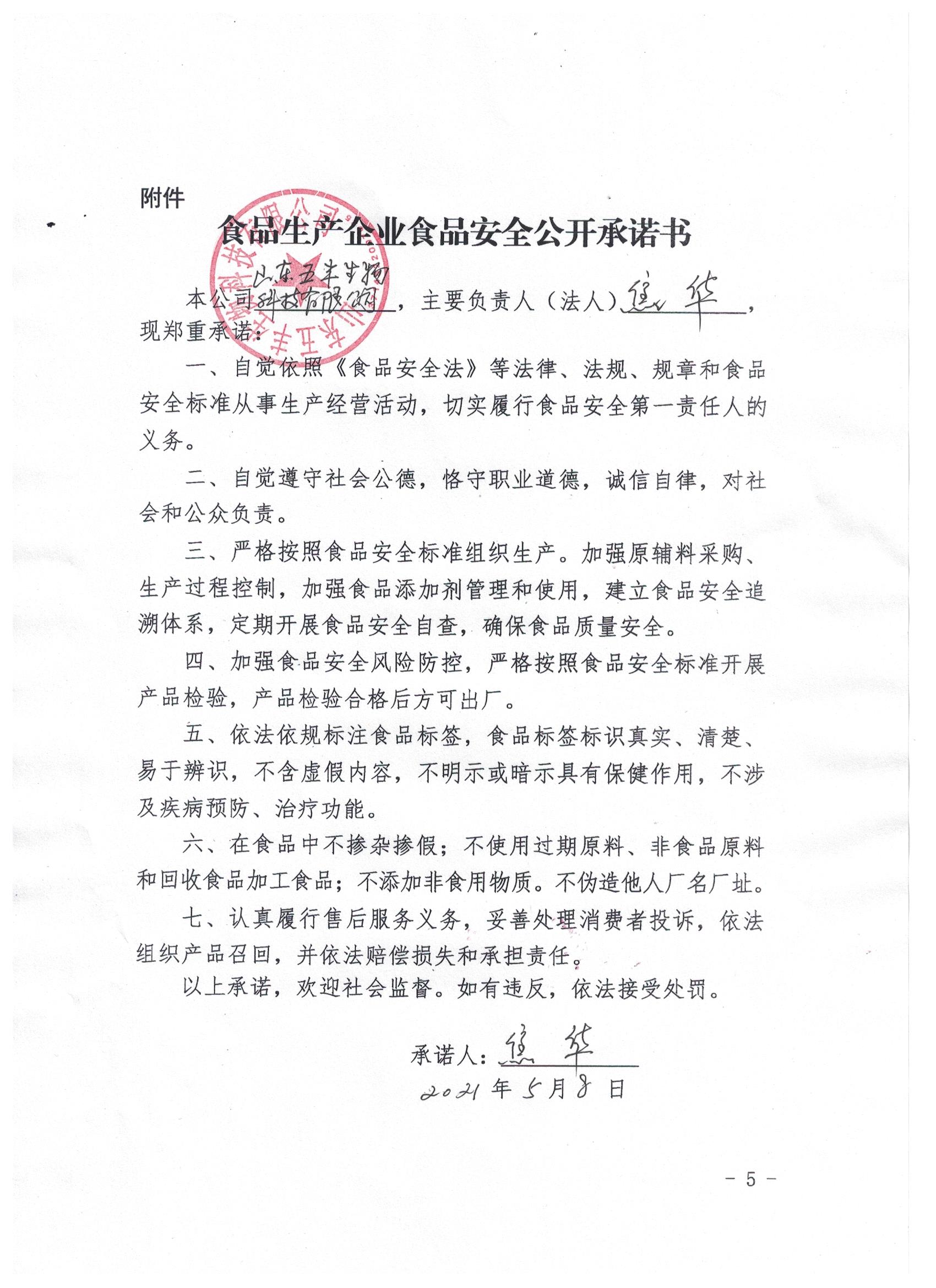 食品生產企業食品安全公開承諾書